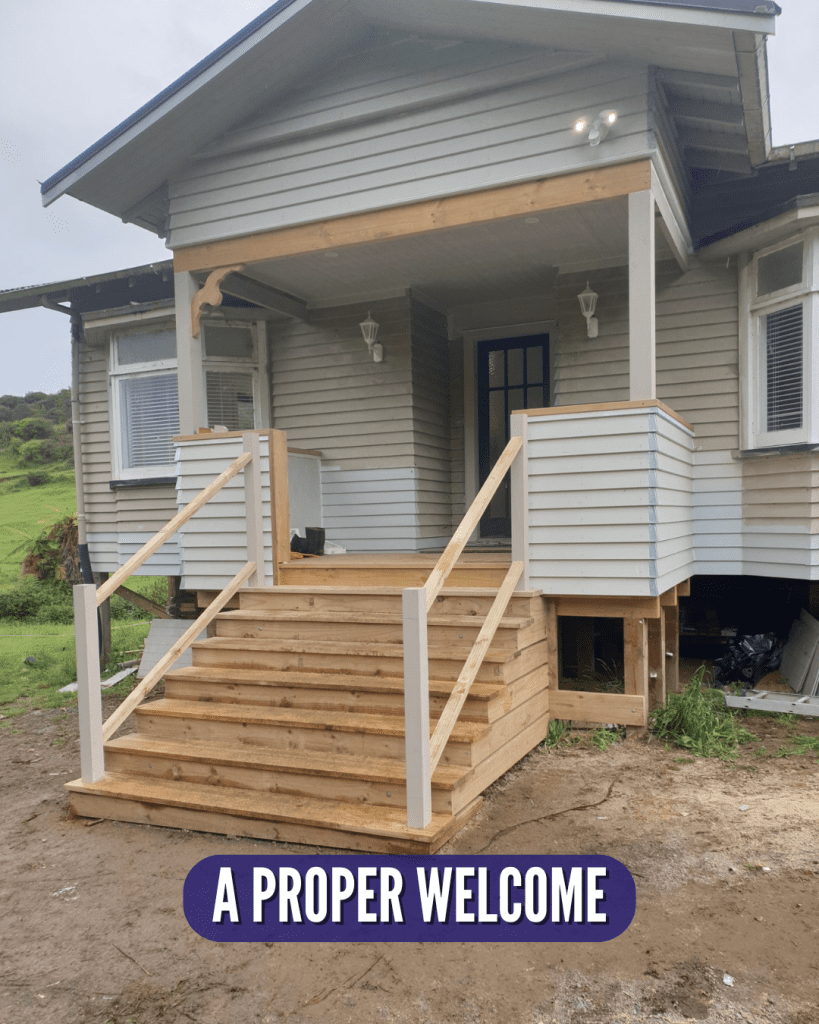 When a house gets relocated, it doesn’t just need a fresh foundation—it needs a proper entrance to match. This project started as a blank slate, with no steps, no landing, and no clear entryway.